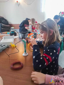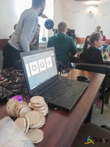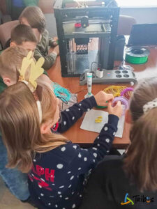 Obok stanowiska artystycznego czekało spotkanie z nowoczesną technologią. Druk 3D i wypalanie wzorów na drewnie wzbudziły duże zainteresowanie. Dzieci miały okazję zaprojektować własne wzory, które następnie były przenoszone na cięty plaster brzozy. Natomiast Damian, na życzenie tworzył dowolnie wybrany model 3d, dając dzieciom mnóstwo radości. W ten sposób powstawały unikalne, personalizowane dzieła, co dostarczało uczestnikom niezapomnianych doświadczeń. ![]()