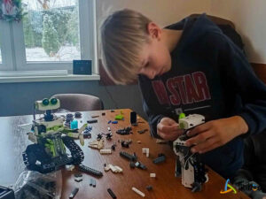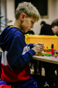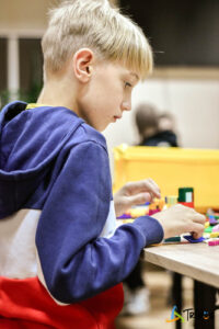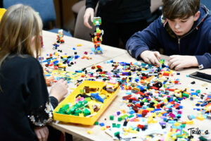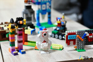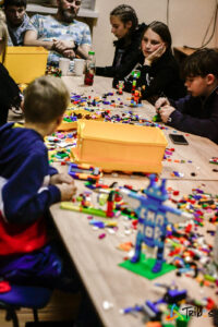 Dodatkową atrakcją były dwa stoły z klockami Lego, na których dzieci mogły tworzyć dowolne wzory i budowle. Dla pasjonatów inżynierii przygotowano również niespodziankę – roboty podobne do Wall-e, których składanie wymagało cierpliwości i skupienia. Po zakończeniu montażu, uczestnicy mogli cieszyć się zdalnie sterowanymi przyjaciółmi. ![]()
