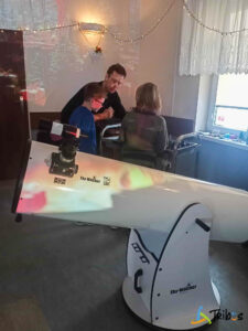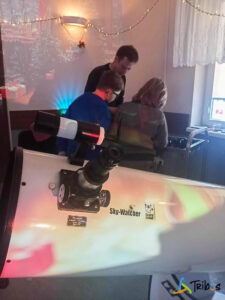 Dla miłośników astronomii przygotowano specjalne stanowisko z profesjonalnym teleskopem. Przemek, entuzjasta astronomiczny, z pasją opowiadał o tajnikach nocnych obserwacji, wprowadzając uczestników w fascynujący świat gwiazd. ![]()