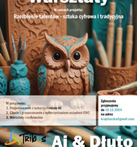 Przedstawiamy galerię prac zrealizowanych na warsztatach z połączenie projektowania AI z pracą w drewnie. Zobaczymy tu zarówno prace wykonane ręcznie jak i te przygotowane przy wsparciu urządzeń CNC. Warsztaty pozostawiły niedosyt uczestników więc zapowiada się kontynuacja prac.