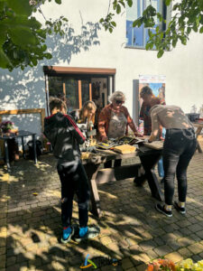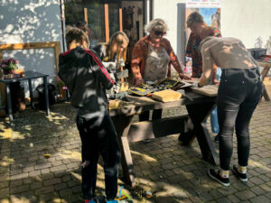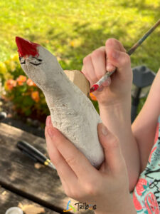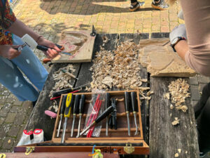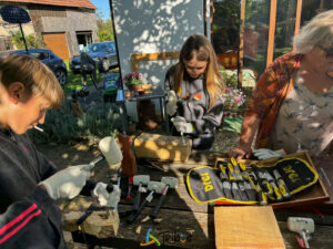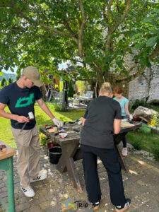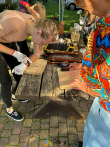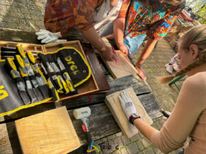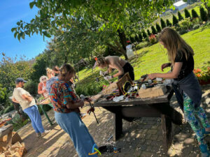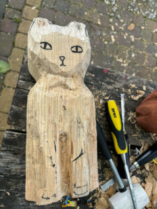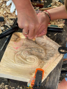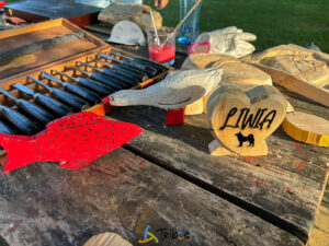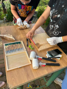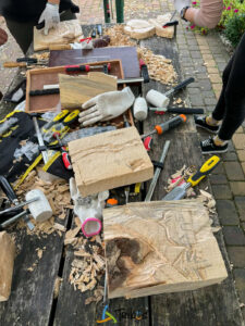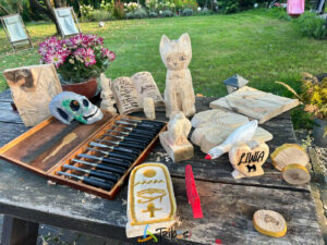 Przez dwa dni podwórko zamieniło się w prawdziwą pracownię artystyczną. Wióry leciały na wszystkie strony, a z każdym uderzeniem młotka z kawałków drewna wyłaniały się niesamowite kształty. Powstały drewniane koty, ptaki, ryby, a nawet serca z dedykacjami. Trzeba przyznać, że wyobraźnia naszych uczestników nie zna granic!