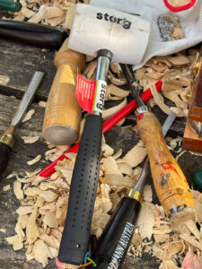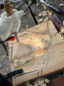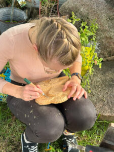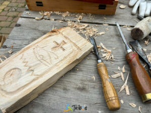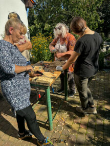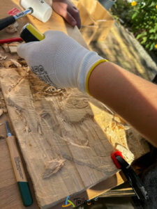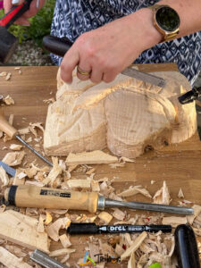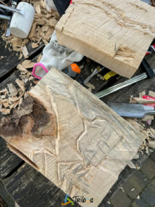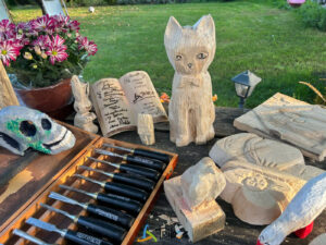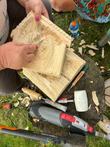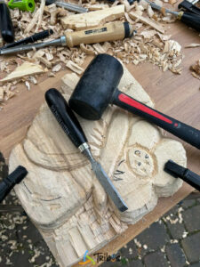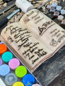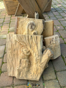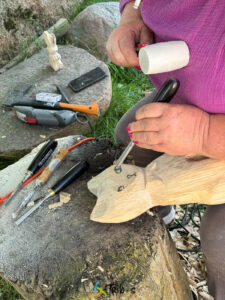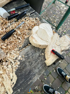 Wszystko to działo się pod czujnym okiem Barbary Pikulik, która z ogromną cierpliwością tłumaczyła, jak trzymać dłuto, żeby nie zrobić sobie krzywdy, a drewnu nadać duszę. Basiu, wielkie dzięki za Twoje wskazówki i zarażenie nas pasją do rzeźbienia – bez Ciebie te pieńki pozostałyby tylko pieńkami.